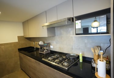 Descubre un espacio que abraza la calidez y el confort. Este departamento ha sido diseñado meticulosamente para crear un ambiente acogedor y relajante, donde la luz cálida se combina a la perfección con una paleta de colores suaves y envolventes.