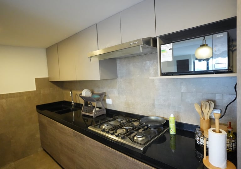 Nuestra cocina completa te permite preparar tus comidas favoritas durante tu estancia en Cuenca.
